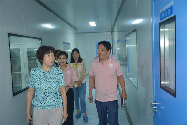 隨后協(xié)會一行人參觀了新獸藥GMP車間、研發(fā)中心、化驗室及倉庫。在參觀過程中,高迎春秘書長對新車間的設(shè)備運行、現(xiàn)場管理及產(chǎn)品生產(chǎn)等進行了詢問了解。參觀結(jié)束后,高迎春秘書長對公司的改造升級給予了充分肯定。