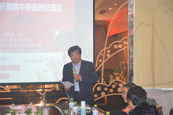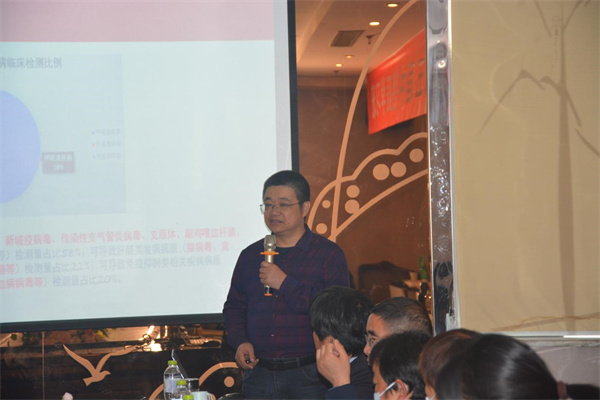隨后,公司技術總監(jiān)王金紀帶來了《簡析禽病中獸醫(yī)辨證施治》的技術報告,在報告中,王總將中醫(yī)與西醫(yī)融合在一起,以中西醫(yī)結合的方式為大家?guī)砹艘粓鼍实闹v座。在授課過程中,針對大家在養(yǎng)殖及公司產(chǎn)品使用過程中遇到的問題,王總與大家進行了現(xiàn)場的交流,通過面對面交流,許多困擾大家許久的問題紛紛迎刃而解。