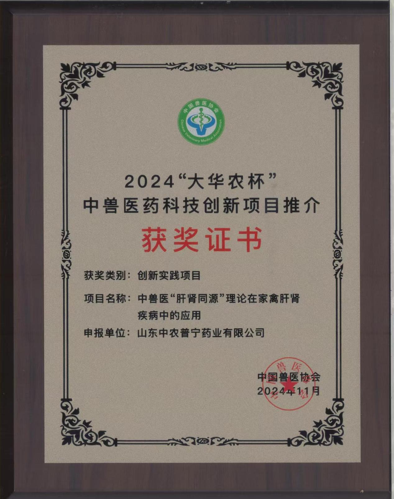 論壇以“中獸醫(yī)·中獸藥—one health新質(zhì)生產(chǎn)力”為主題,圍繞中獸醫(yī)藥的傳承創(chuàng)新、人才培養(yǎng)和平臺共建三大核心議題進行。在本次論壇中,公司技術(shù)總監(jiān)王金紀(jì)的《中獸醫(yī)“肝腎同源”理論在家禽肝腎疾病中的應(yīng)用》(暨甘甚寶研發(fā)理念和思路),榮獲中國獸醫(yī)協(xié)會2024年“大華農(nóng)杯”中獸醫(yī)藥科技創(chuàng)新項目獎。