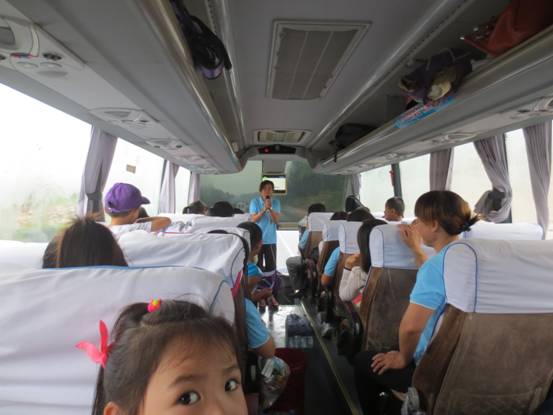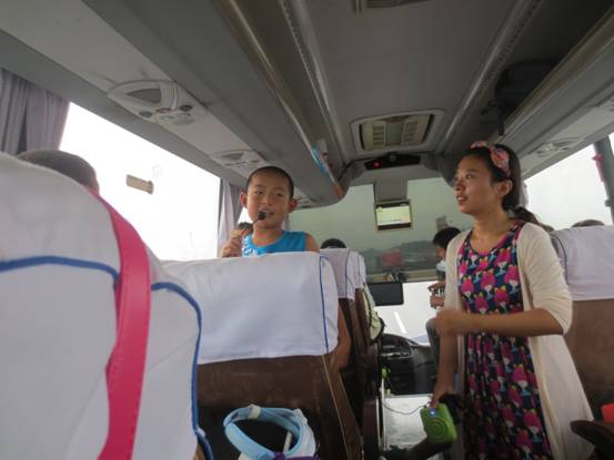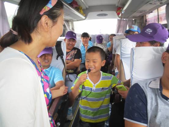 早餐過(guò)后在美女導(dǎo)游的主持下,人力資源部的調(diào)動(dòng)下以一首滾滾長(zhǎng)江東逝水開(kāi)啟了節(jié)目表演接力時(shí)段,唱歌、笑話(huà)、腦筋急轉(zhuǎn)彎、舞蹈、古詩(shī)、三字經(jīng)、出師表等豐富的節(jié)目呈獻(xiàn)給了大家,孩子們也成為重要的演員之一,大家參與度極高一路上歡聲笑語(yǔ)一點(diǎn)也感覺(jué)不到時(shí)間過(guò)得很快。