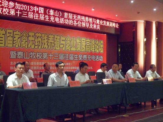 2013年8月17日下午6點,2013中國(泰山)首屆無藥殘養(yǎng)殖與禽業(yè)發(fā)展高峰論壇暨泰山牧校第十三屆往屆生免費充電活動在一片歡呼聲中勝利閉幕。本次會議15日報道,正式會期2天,來自全國各地的禽業(yè)界朋友們歡聚一堂,共商大計,為長期低迷的中國家禽業(yè)注入了一支興奮劑,為迷茫中的禽業(yè)工作者撥開云霧,營造了積極向上的良好氛圍。