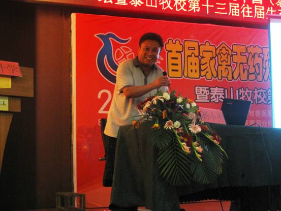 山東省畜牧獸醫(yī)局張洪本副局長就山東省家禽業(yè)發(fā)展現狀、面對的困難向與會人員做了通報,他鼓勵各單位應積極應對困難,做好本職工作,加大宣傳投入,對謠言、謬論及誹謗進行堅決駁斥。崔治中教授重點介紹種雞白血病凈化的必要性和關鍵技術。常維山教授就雞氣囊炎的發(fā)病機理和仿制要點進行了精彩講解。唐兆新教授介紹了疫苗的分類、保存方法,并分析了造成免疫失敗的主要原因。劉思當教授憑借豐富的臨床知識介紹了當前雞病的主要流行動態(tài),并就多個知識點表達了與其他老師不同的看法。趙繼勛教授重點就H7N9病毒的傳播、防治及未來走向表達了自己的觀點。劉治西教授就標準化肉雞養(yǎng)殖的關鍵技術與大家分享,并用大量數據公式證明了細節(jié)決定成敗的管理精髓。秦卓明研究員就水禽疾病流行動態(tài)及防控措施進行了精彩講解。楊小勇博士就中藥在養(yǎng)禽中的應用思路及進展進向大家進行通報,并當場給出4個中藥配方,贏得了陣陣喝彩。贊助企業(yè)也派出實力派講師,就如何解決基層問題以及無藥殘養(yǎng)殖的難點與大家認真交流。學校優(yōu)秀畢業(yè)生馬玉寶、孟濤就職業(yè)生涯中的經歷、經驗和心得毫無保留的匯報給了領導和參會代表,把會議氣氛推向高潮。